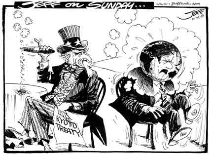 He welcomed ratification of the Kyoto pact on Friday by Russia's lower house of parliament, paving the way for the long-delayed 1997 accord to enter into force in the 126 nations that approved it even though the world's greatest polluter, the United States, pulled out in 2001. "This mustn't lull us into thinking that the problem is solved," Pachauri said. "Kyoto is not enough. We now have to look at the problem afresh." Kyoto is a first step toward curbing emissions of gases like carbon dioxide, mainly from burning fossil fuels, that scientists blame for trapping heat in the atmosphere like the panes of glass in a greenhouse. Pachauri urged the world to shift strategy from Kyoto's reduction targets for greenhouse gases to long-term global targets on how much of the gases the atmosphere should contain. Carbon dioxide levels have risen about 30 percent since the start of the 18th century to almost 380 parts per million. "We need a degree of agreement on where to stabilize concentrations," he said. "We have to try to come up with an understanding of where we are heading in the next 30-40 years." Pachauri leads work to produce a 2007 U.N. climate report based on research by more than 2,000 scientists, updating a 2001 assessment that concluded there was "new and stronger evidence" that human activities were to blame for rising temperatures. "My hope is that this (2007 report) will be able to fill gaps, reduce uncertainties and produce a much stronger message," said Pachauri, who is based in New Delhi. Under Kyoto, developed nations have agreed to cut emissions of carbon dioxide by at least five percent below 1990 levels by 2008-12 by restraining use of coal, oil and natural gas and shifting to renewable energies like wind and solar energy. Story by Alister Doyle, Environment Correspondent REUTERS NEWS SERVICE |